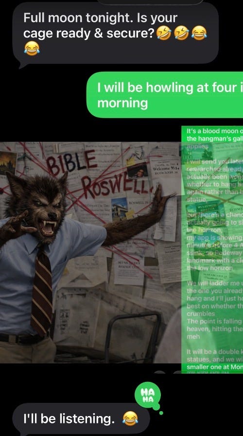 More about that later, but as you were told in the Werewolf of Roswell’s origin story, I serve you not just as sage, but as spectacle …